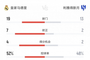 体育资讯6月19日讯 新世俱杯首轮,皇马1-1新月。双方全场重点数据对比如下↓