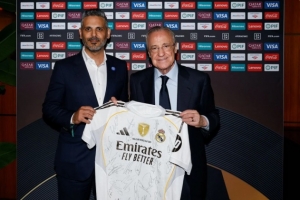 体育资讯6月19日讯 在皇马对阵利雅得新月的世俱杯小组赛首轮开赛前,皇马主席弗洛伦蒂诺与利雅得新月高层互换了礼物。