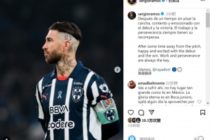 拉莫斯社媒晒出自己的照片,并写道:“在一段时间没有踏上球场之后,我为自己的首秀以及球队的胜利感到高兴和激动,努力和坚持总会得到回报。”
