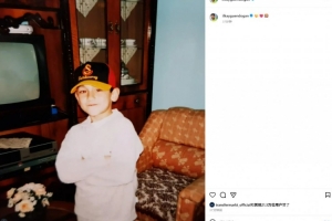 圆梦?京多安社媒晒儿时头戴加拉塔萨雷队徽球帽照片