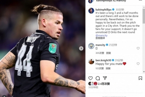 “但很高兴能够身披曼城球衣重返赛场,感谢球迷们的支持,这份心意我铭记于心,晋级下一轮!”
