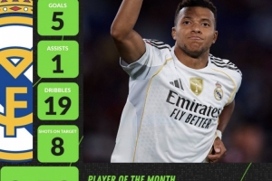 • 皇马9月最佳球员候选:姆巴佩10球1助领衔,维尼修斯、居勒尔在列