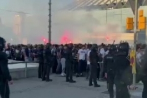 巴萨巴黎大战一触即发!大批巴黎球迷在球场前聚集并呼喊口号