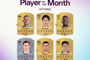 英超9月最佳球员候选:哈兰德、扎卡、苏维门迪、镰田大地在列