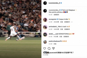 🪄努诺-门德斯发文谈击败巴萨:魔法般的巴黎,宝贵的分数