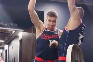 😂快船“迷你扣篮大赛”:博格丹隔扣巴图姆 科林斯连续胯下