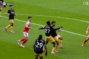 是否处于自然位置?西汉姆球员禁区内手球,主裁没表示VAR未介入