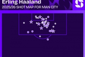 高效!哈兰德本赛季射门36次打进11球,平均每3.3脚射门进1球
