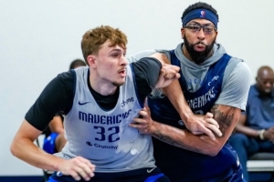 保持专注!独行侠官方晒训练照:弗拉格和安东尼-戴维斯激烈卡位