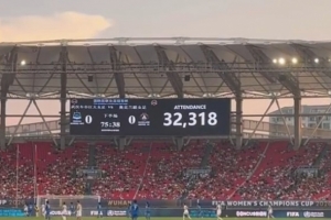 武汉车谷江大女足vs奥克兰联现场观众人数:32318人
