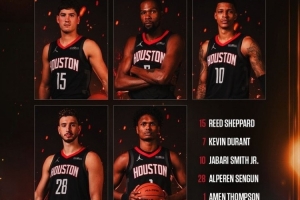 火箭公布今日战爵士首发:谢泼德、杜兰特、小贾、申京、阿门