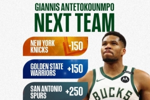 字母哥下家赔率!纽约第一 勇士马刺紧随其后