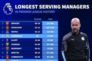 附英超历史主帅任职时长榜: