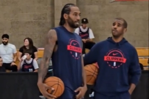 • 快船季前赛主场战掘金 保罗赛前热身飚中负角度三分