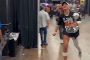 分贝爆表!夺冠后 阿贾球员通道内手捧奖杯边跑边喊庆祝