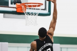 字母哥上身哥哥43号球衣参加训练 双臂的肌肉轮廓简直离谱!