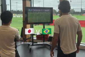 见证历史👀远藤航和阿利森在利物浦基地一起看了日本3-2巴西