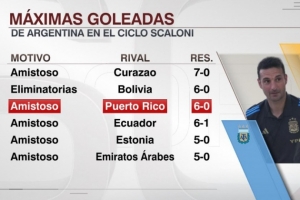 6-0波多黎各,这是斯卡洛尼执教阿根廷队的第二大比分胜利