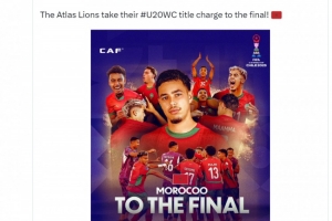 摩洛哥进入世青赛决赛,阿什拉夫转发海报祝贺:摩洛哥加油