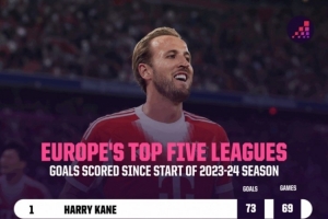 23-24赛季以来五大联赛射手榜:凯恩73球居首,姆巴佩哈兰德二三
