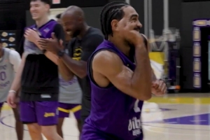 湖人队内训练视频:一对一激情对抗 佩林卡围观 文森特模仿走步