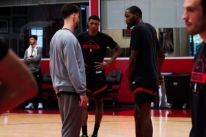 明天客战卫冕冠军雷霆!火箭晒训练照:杜兰特申京贾巴里同框