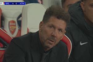 眼神要喷火😠马竞0-4落后阿森纳,场边西蒙尼表情复杂