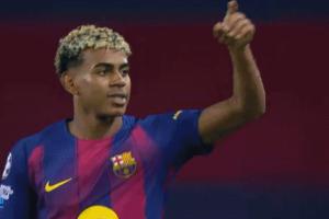 亚马尔本场第68分钟主罚点球命中,之后亚马尔庆祝时向看台做出了飞吻,亚马尔的女友妮基-妮可本场在看台观看比赛。
