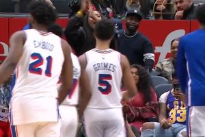 一蹦三尺高!76人加时反超 恩比德冲锋进场庆祝!