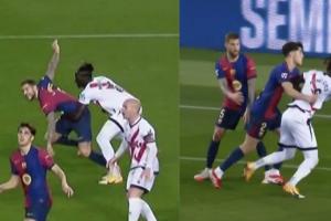 体育资讯02月18日讯 西甲第24轮,巴萨主场1-0战胜巴列卡诺,登顶西甲积分榜。针对比赛中裁判的判罚,在外网拥有31万关注的皇马资讯博主“Madrid Universal”提出了质疑。