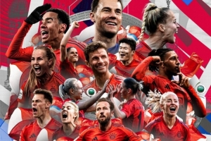 拜仁男足和女足都获得本赛季德甲冠军,俱乐部官方社媒晒出男女足夺冠海报,其中包括两座冠军奖盘,诺伊尔、穆西亚拉、金玟哉、穆勒、奥利塞、基米希、凯恩代表男足出镜。