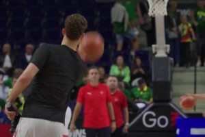 申老师这手活!申京热身赛赛前保龄球姿势随手一撩命中三分😍