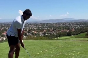紧紧跟随父亲的步伐!湖人球员布朗尼也开始练习高尔夫球了😍