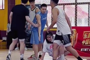 妹子打球被撞倒不用男生扶,自己用单打找回来