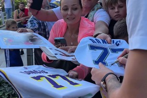 优质偶像✍️场外大批球迷捧独行侠、湖人球衣,东契奇一一签名