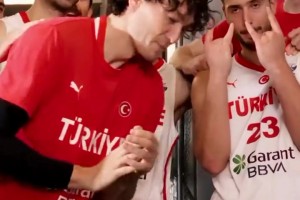 申京三双率队杀进半决赛 土耳其队长奥斯曼笑嘻嘻给对阵图贴队标