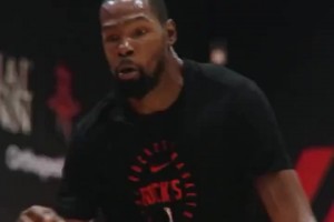 备战新赛季 期待!杜兰特身穿火箭训练T恤在球馆训练~