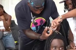 詹姆斯剪掉网红kai脏辫 接到自己头上展示新发型😂