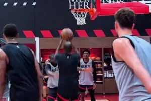 练得很刻苦!湖人训练营首日,艾顿全身湿透,不停拿毛巾擦拭