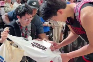 🤣笑死!开拓者球迷日上,杨瀚森背着粉红色小书包给球迷签名!