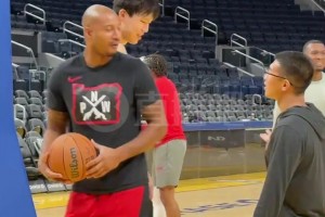 首秀不紧张!!杨瀚森赛前训练与助教有说有笑,身旁的翻译也忙坏了