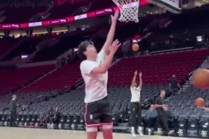 把终结练好💪杨瀚森将迎来主场首秀,热身猛练小勾手~