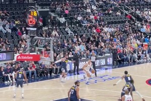 船蜜大喜!大洛点飞瓦兰横撤步飚进三分,首节第3记三分了!