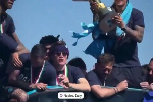 放飞自我了!麦克托米奈在那不勒斯的夺冠游行中非常松弛