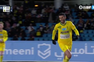 利雅得胜利客场落后!奥马尔禁区内抽射打进死角破门!