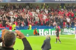 穆里尼奥走向底线,让本菲卡球迷不要向前本菲卡球员恩佐扔东西