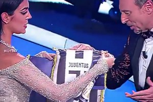 乔治娜和喜剧演员拿意大利国家德比玩梗,台下C罗微笑鼓掌😄