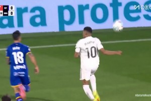 可惜了!罗德里戈送妙传!姆巴佩单刀球打门被扑出!