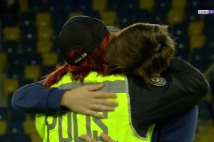 赛前居莱尔和当警察的姑姑亲切拥抱