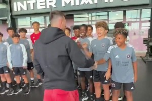 梅西向迈阿密国际足球学院的孩子们展示了他的第八座金球奖